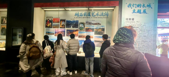 中外游客的热情参与成为一大核心亮点。国内游客中,既有举家出行的亲子家庭,也有专程打卡的文化爱好者和摄影发烧友,不少观众在留言簿上写下对长城文化的感悟与赞美;外国游客们对长城的历史底蕴与当代活力创意表现出浓厚兴趣,纷纷驻足咨询长城历史文化脉络、长城文创设计以及长城摄影艺术,部分游客还通过社交媒体向海外分享观展体验,让长城文化的影响力跨越国界。