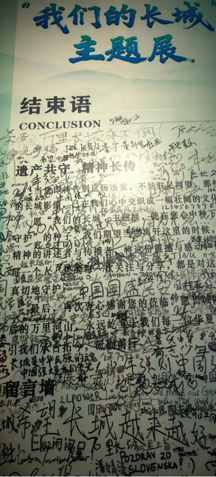 现场最动人的一幕,莫过于留言墙上密密麻麻的字迹。中外游客纷纷提笔寄语,字里行间满含对长城的热爱与礼赞,亦承载着对本次展览的诚挚祝福。
